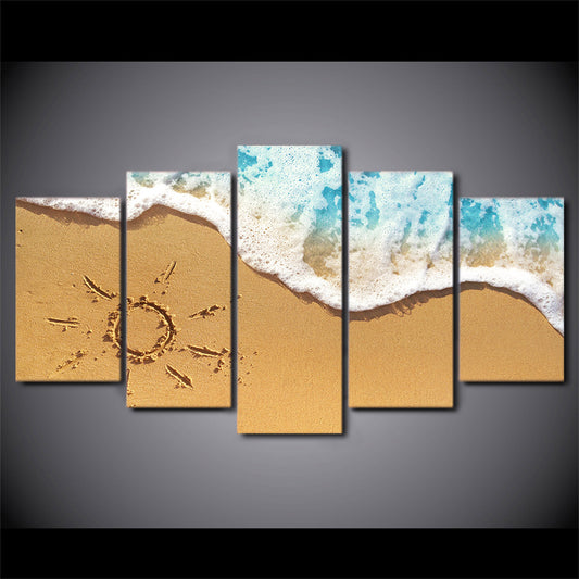 Limited Edition 5 Piece Beach Sand And Waves Canvas