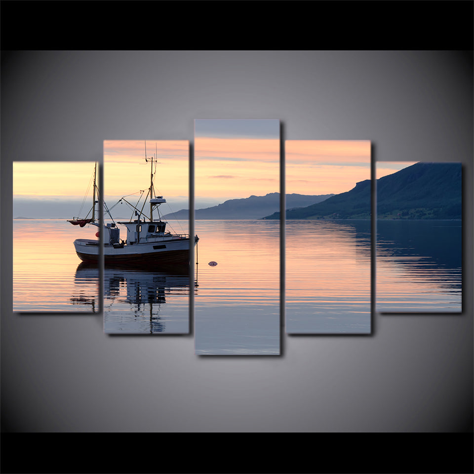 Limited Edition 5 Piece Fishing Boat In The Ocean Canvas