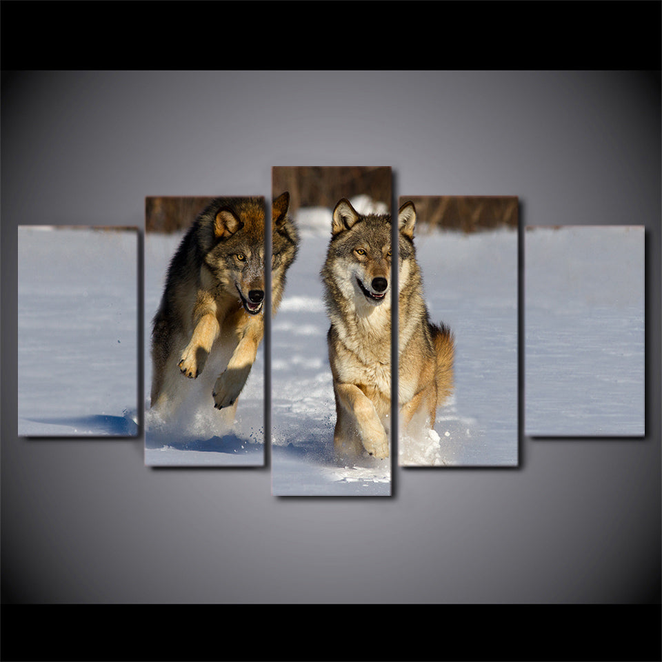 Limited Edition 5 Piece Running Wolves Canvas