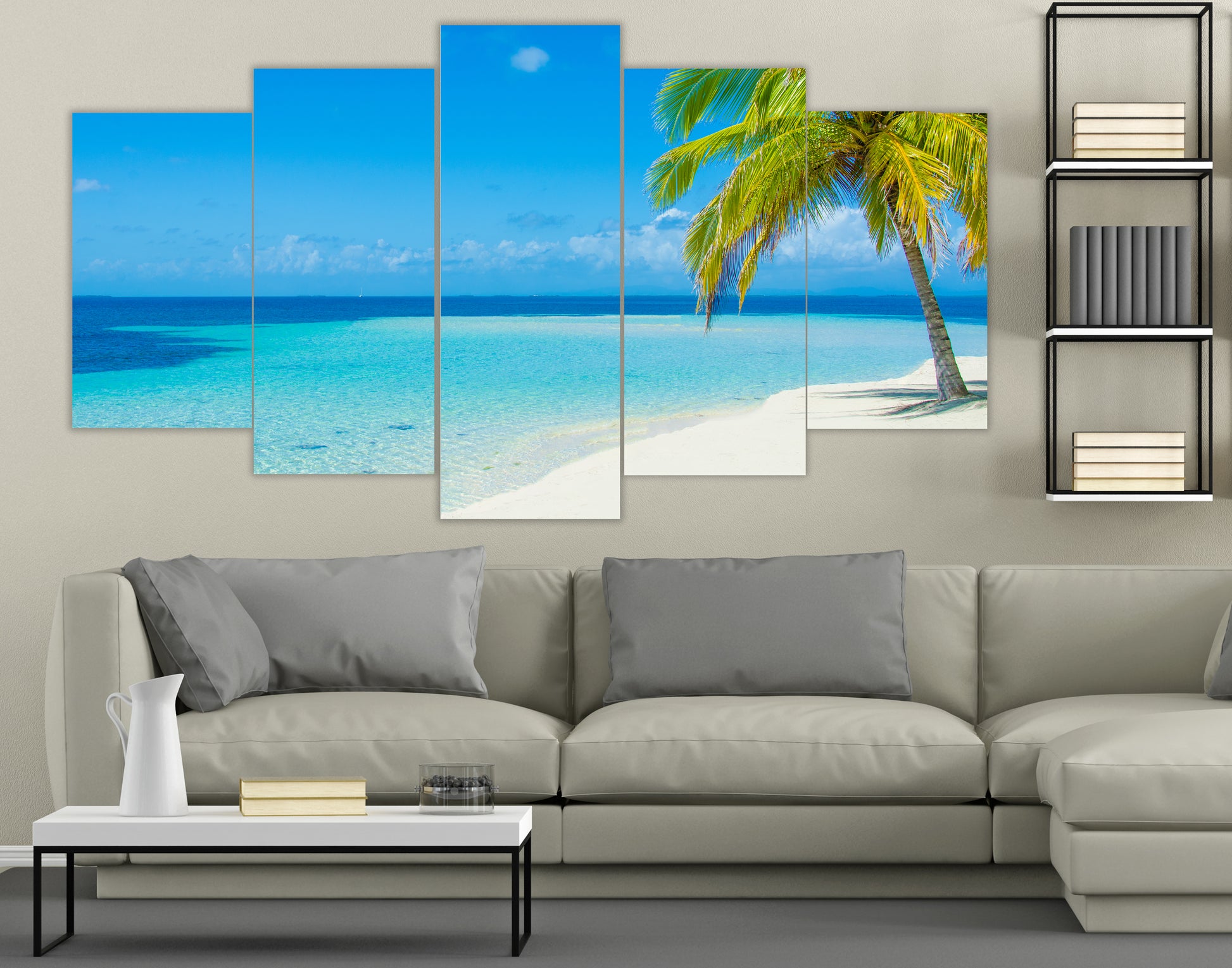 Limited Edition 5 Piece White Beach With Palm Trees Canvas